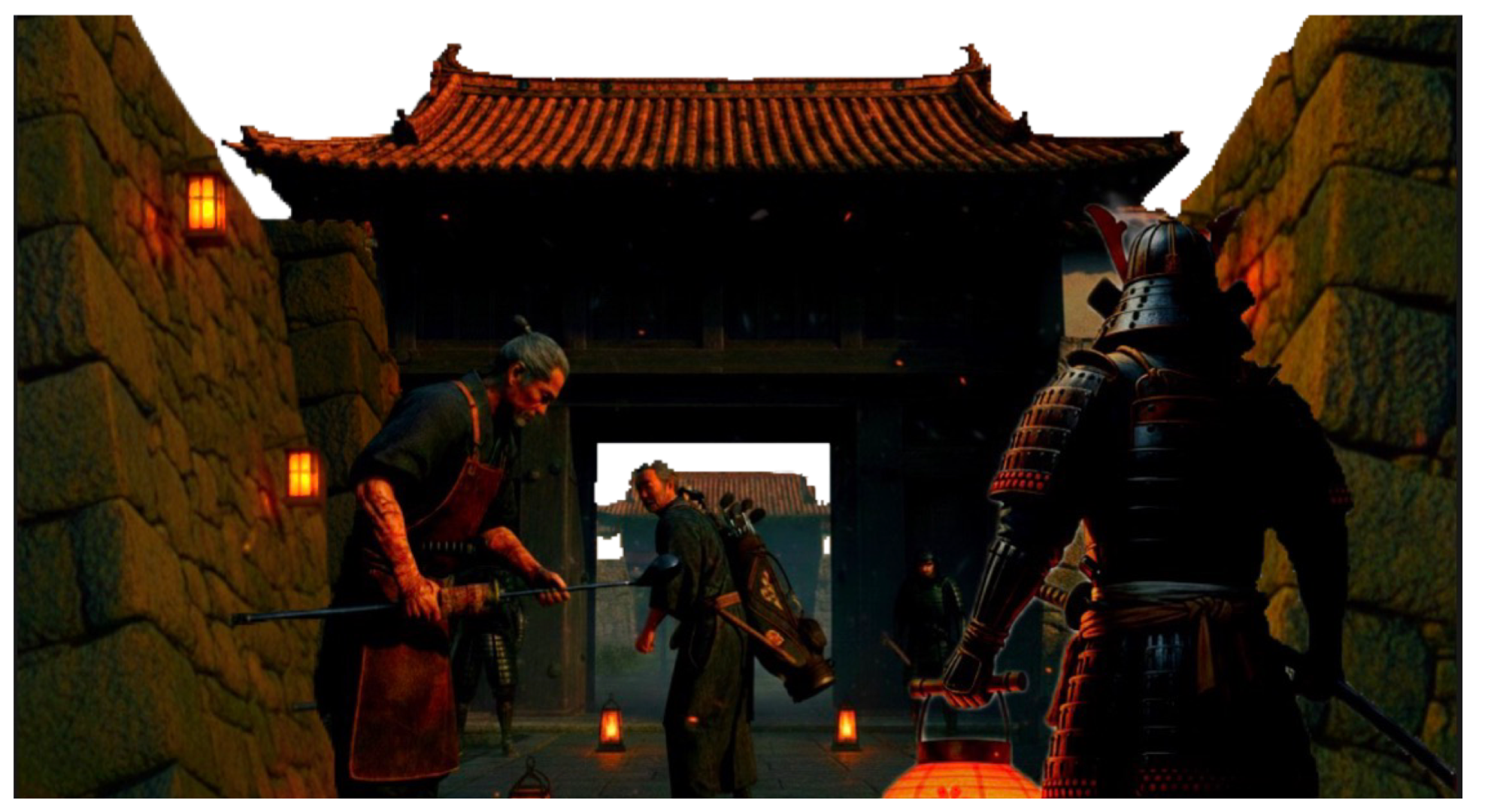 At nightfall, massive gates of iron and cedar appear. The air is heavy with incense and old wood. This is the path to the leather-bound chest and the golden tools of the Golf Swing Ignition.