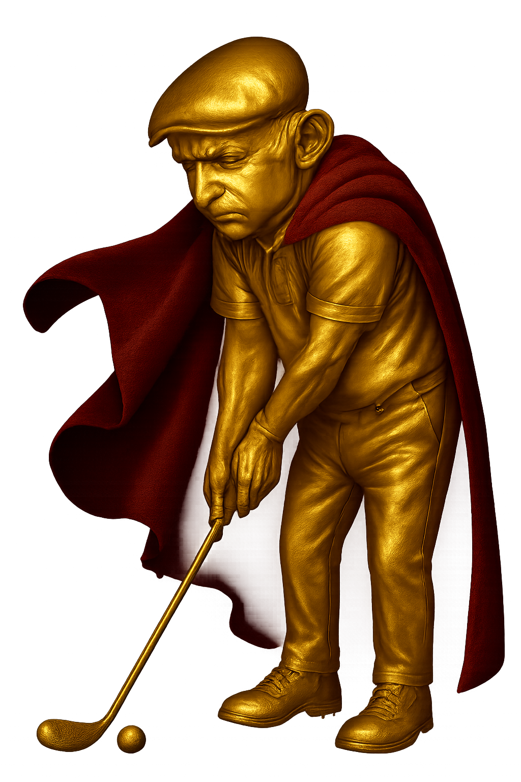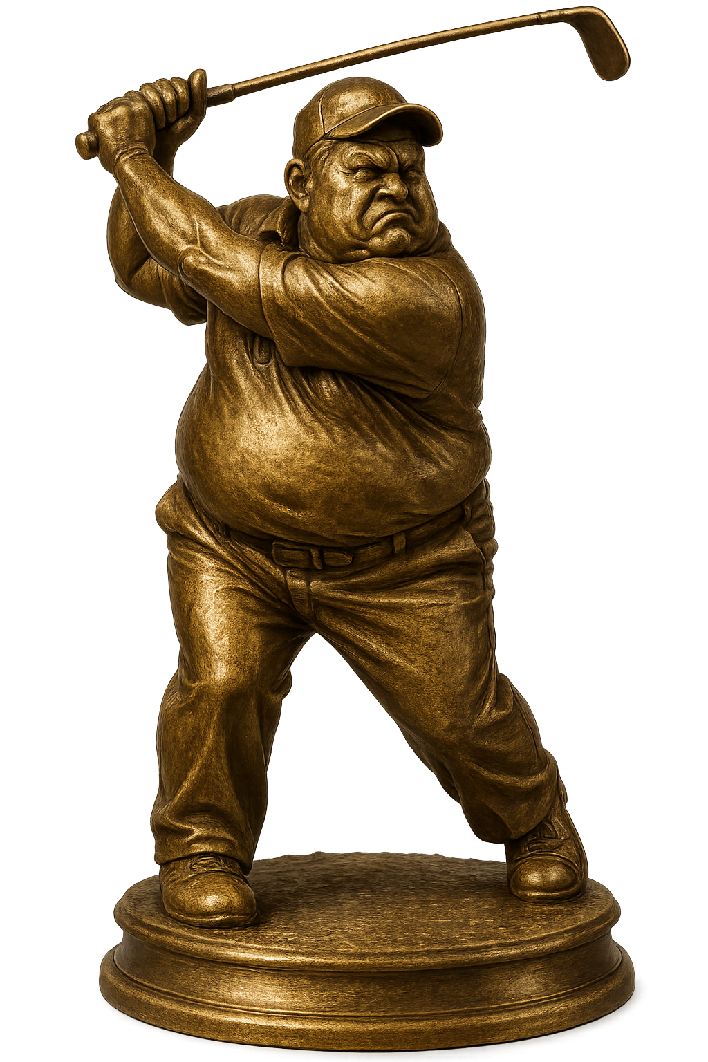 "Ach so… voilà… tools can shine, but the swing tells the truth." The one who hides behind gear and numbers. He shows up with a tour spec driver, custom milled putter, and enough gadgets to run a small studio. He talks loft, lie, spin, angles like he’s giving a seminar. But when he finally swings, his posture never settles. The club comes down with speed but no control, and the ball fires sideways. All the gear looks impressive, but the swing exposes everything he tried to cover. The Gear Junkie.